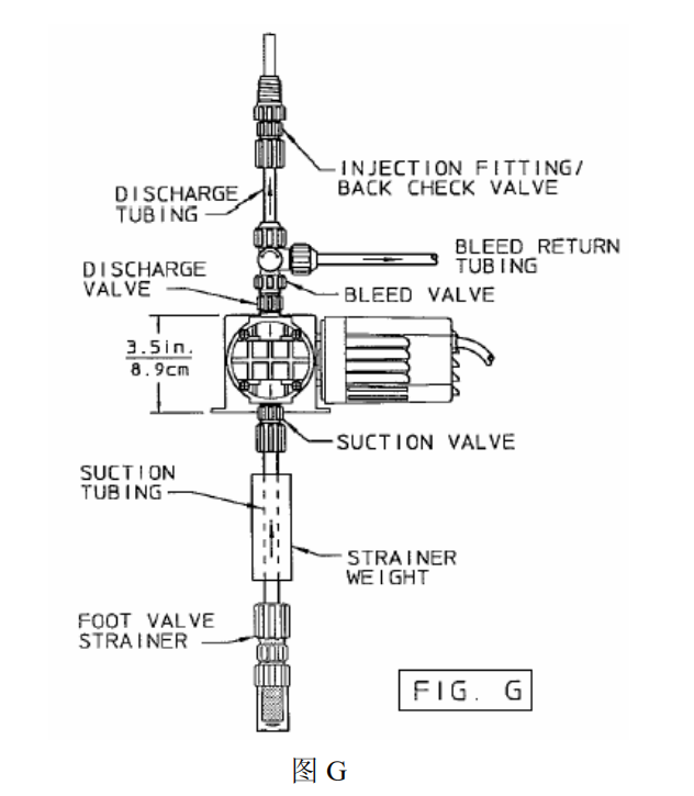 警告:在离开泵工作现场时,检查泵的刻度。在被处理的水中检查残余化学药剂是更正泵设置的最好指示。
